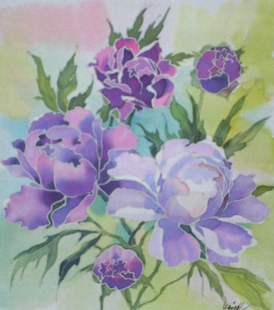 Purple roses Black Ornate Wood Framed Art Print with Double Matting by Mayskaya, Alisa