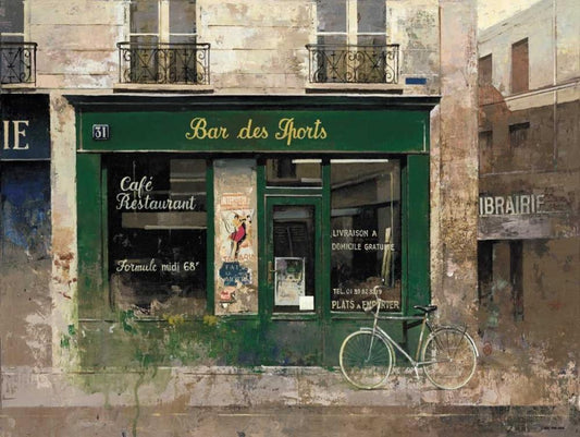 Bar des Sports Black Ornate Wood Framed Art Print with Double Matting by Hak, Chiu Tak