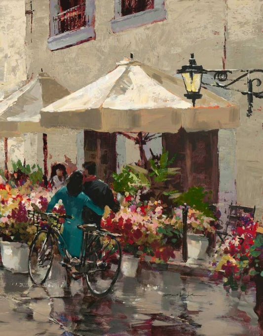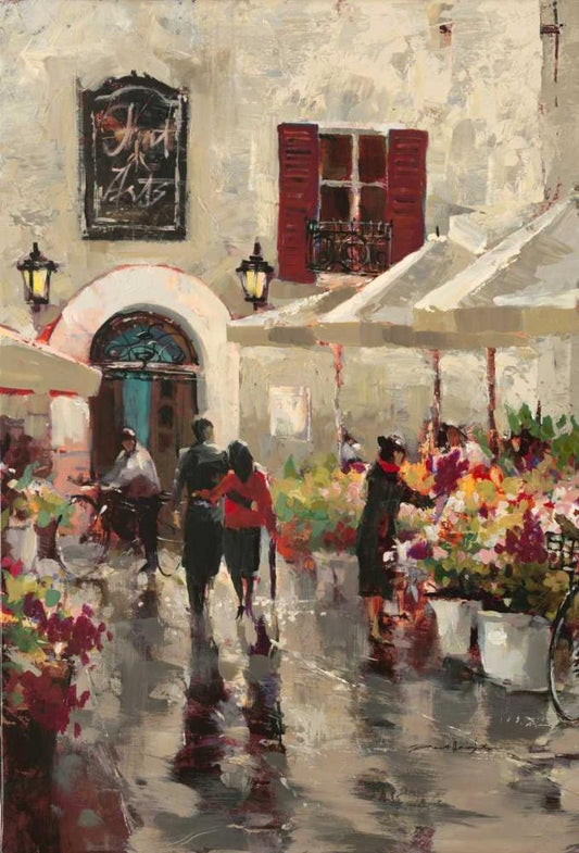 Flower Market Street Black Ornate Wood Framed Art Print with Double Matting by Heighton, Brent