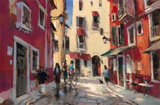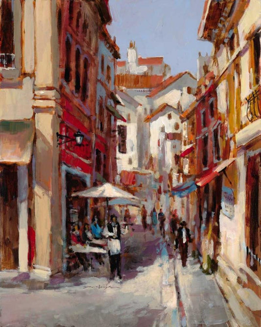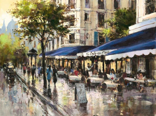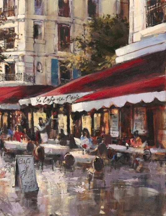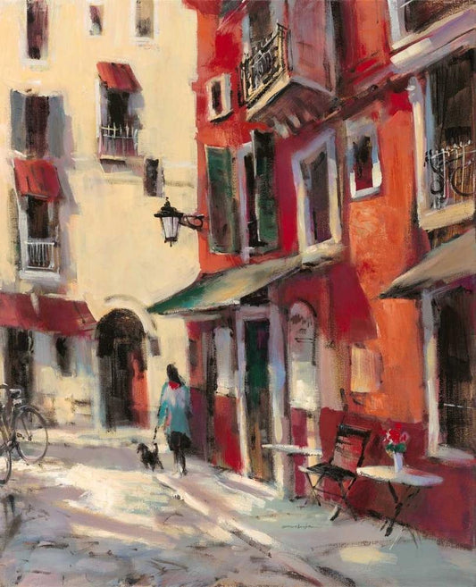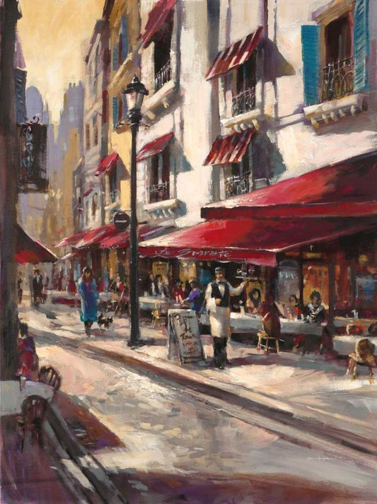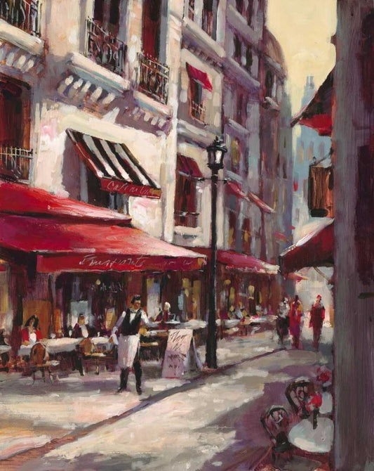 Cafe Stroll Black Ornate Wood Framed Art Print with Double Matting by Heighton, Brent