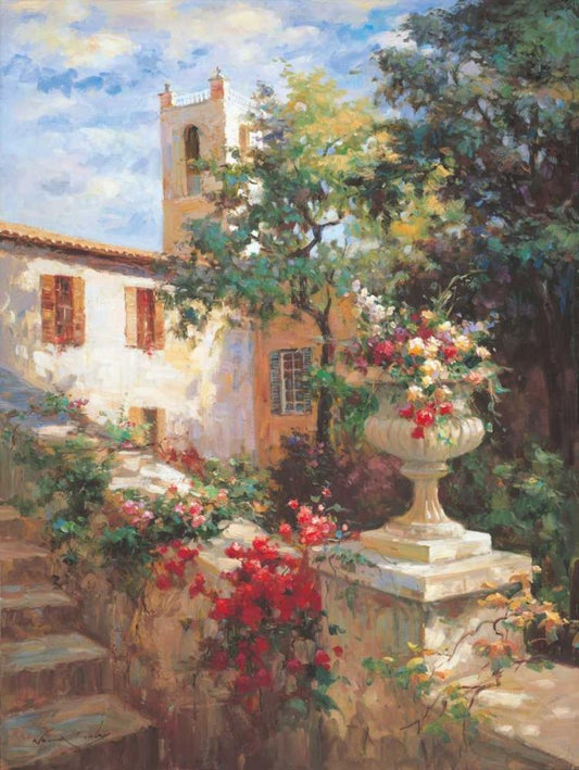 Courtyard Shadows Black Ornate Wood Framed Art Print with Double Matting by Oxley, Vail