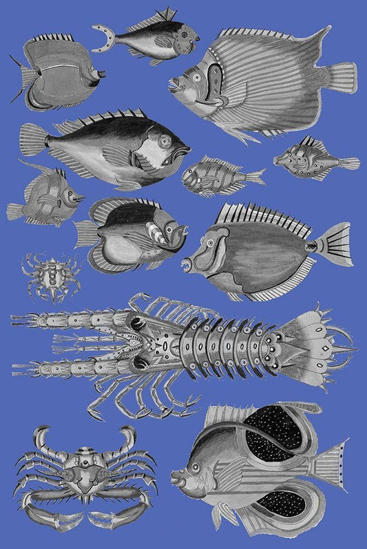 Tropical Fish Collage 3-Blue Background White Modern Wood Framed Art Print with Double Matting by Renard, Louis