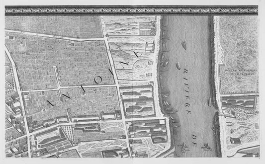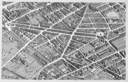 Paris 1739 Sectional map White Modern Wood Framed Art Print with Double Matting by Turgot, Michel-Etienne
