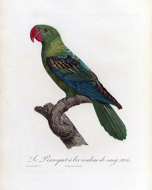 Le Perroquet a bac couleur de sang White Modern Wood Framed Art Print with Double Matting by Barraband, Jacques