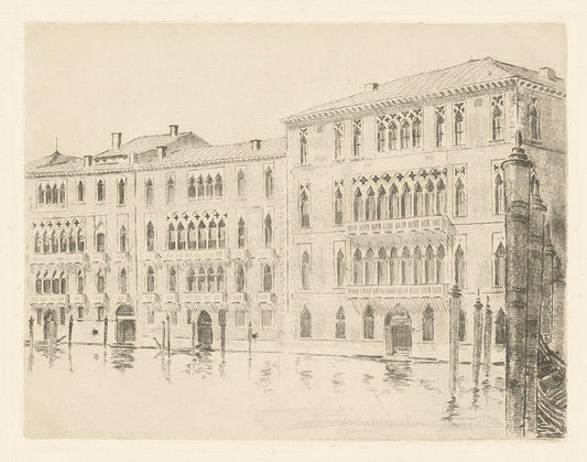 Venice Etching Black Ornate Wood Framed Art Print with Double Matting by Wild Apple Portfolio