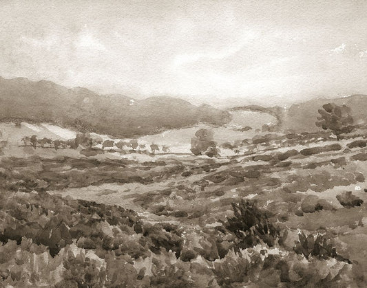 Field of Flowers III Sepia Black Ornate Wood Framed Art Print with Double Matting by Wild Apple Portfolio