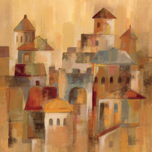 Old Town II Black Ornate Wood Framed Art Print with Double Matting by Vassileva, Silvia