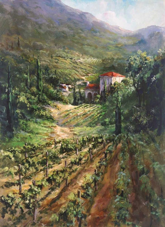 Tuscany Vineyard Black Ornate Wood Framed Art Print with Double Matting by Fronckowiak, Art