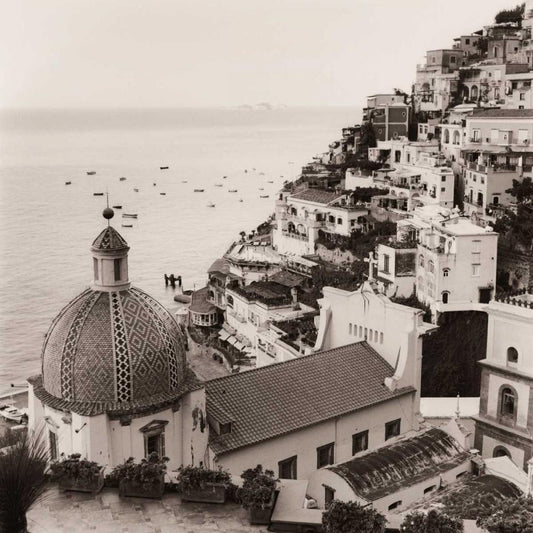 Positano Vista Black Ornate Wood Framed Art Print with Double Matting by Blaustein, Alan
