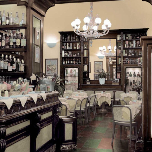 Caffe Frienze - 1 Black Ornate Wood Framed Art Print with Double Matting by Blaustein, Alan