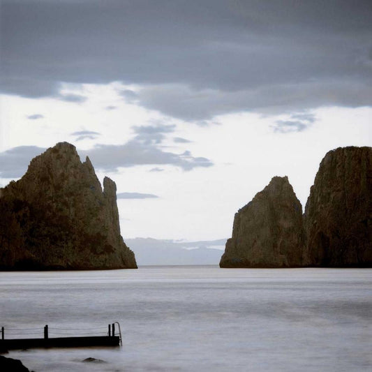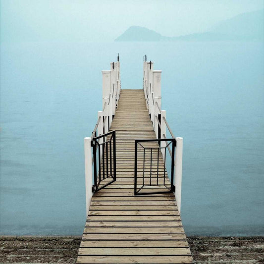 Menaggio Pier Black Ornate Wood Framed Art Print with Double Matting by Blaustein, Alan