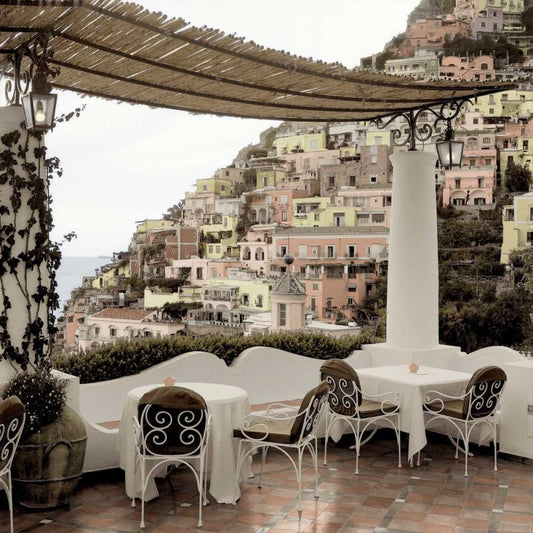Positano Caffe - 1 Black Ornate Wood Framed Art Print with Double Matting by Blaustein, Alan