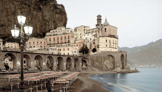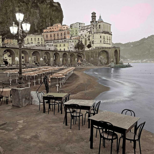 Atrani Caffe - 5 Black Ornate Wood Framed Art Print with Double Matting by Blaustein, Alan