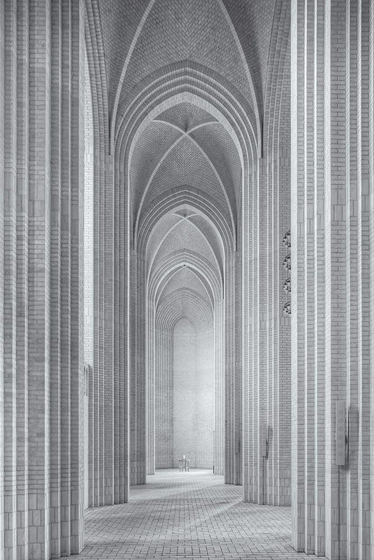 Grundtvigs Kirke White Modern Wood Framed Art Print with Double Matting by Fleckenstein, Martin