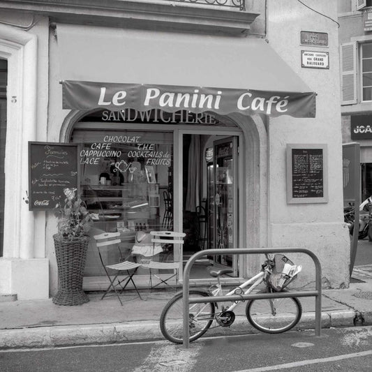le Panini Cafe Black Ornate Wood Framed Art Print with Double Matting by Blaustein, Alan