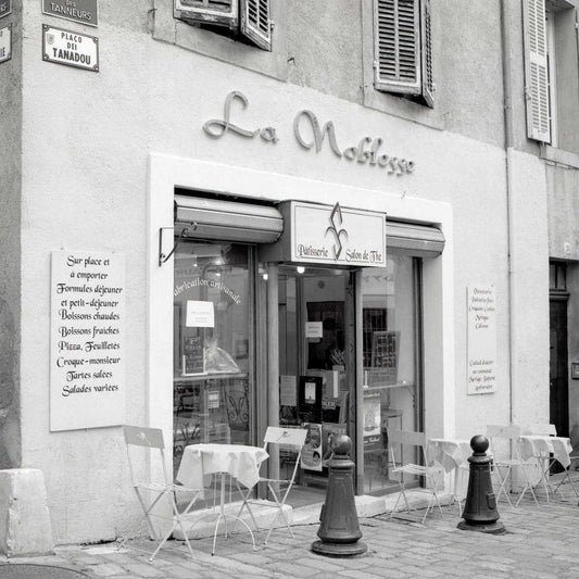 Carrefour Bistro Black Ornate Wood Framed Art Print with Double Matting by Blaustein, Alan
