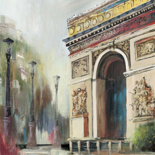 Arc de Triomphe Black Ornate Wood Framed Art Print with Double Matting by Fischer, Davud