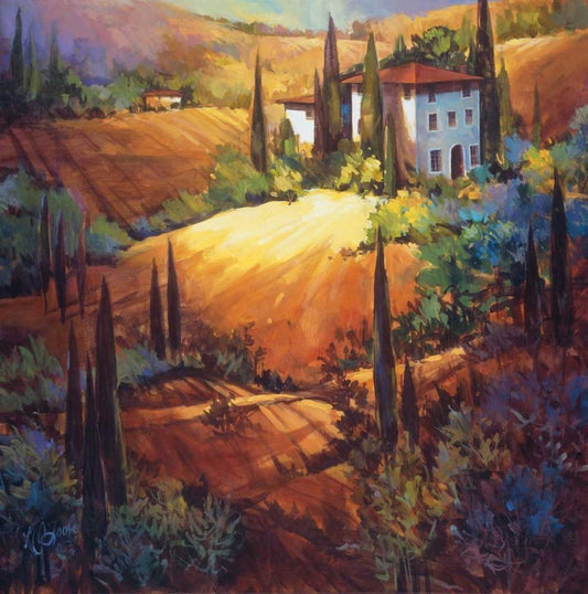 Morning Light Tuscany Black Ornate Wood Framed Art Print with Double Matting by OToole, Nancy