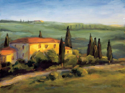 A Tuscan Morning Black Ornate Wood Framed Art Print with Double Matting by Downs, Michael
