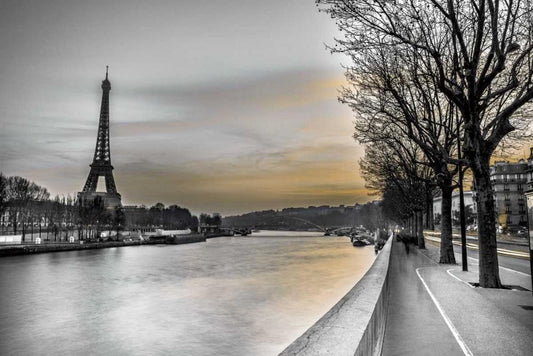 River Seine and The Eiffel Tower Black Ornate Wood Framed Art Print with Double Matting by Frank, Assaf