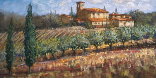 Hillside Olives Black Ornate Wood Framed Art Print with Double Matting by Surridge, Malcolm