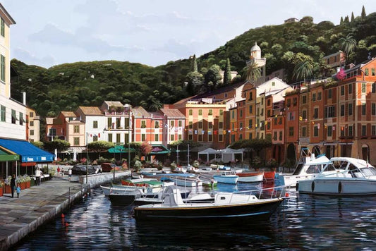 Sunrise Over Portofino Black Ornate Wood Framed Art Print with Double Matting by Saunders, Bill