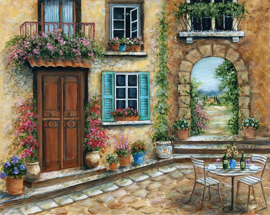 Tuscan Courtyard Black Ornate Wood Framed Art Print with Double Matting by Dunlap, Marilyn