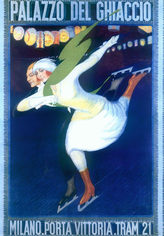 Ice Skating Black Ornate Wood Framed Art Print with Double Matting by Vintage Apple Collection