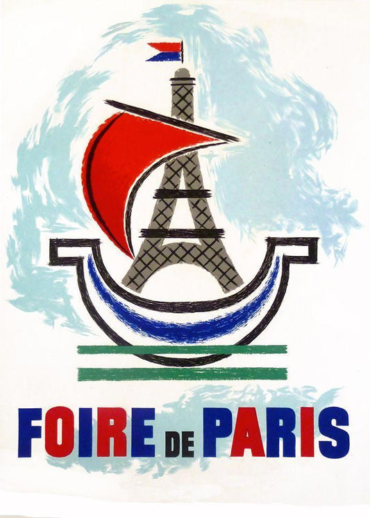 Foire De Paris Black Ornate Wood Framed Art Print with Double Matting by Vintage Apple Collection