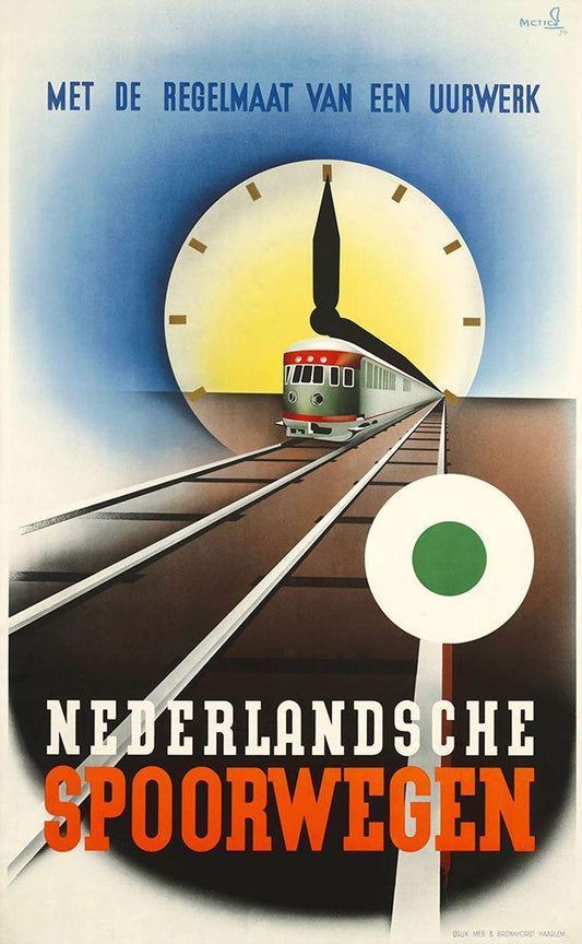 Artdeco_Railroad_Netherlands Black Ornate Wood Framed Art Print with Double Matting by Vintage Apple Collection