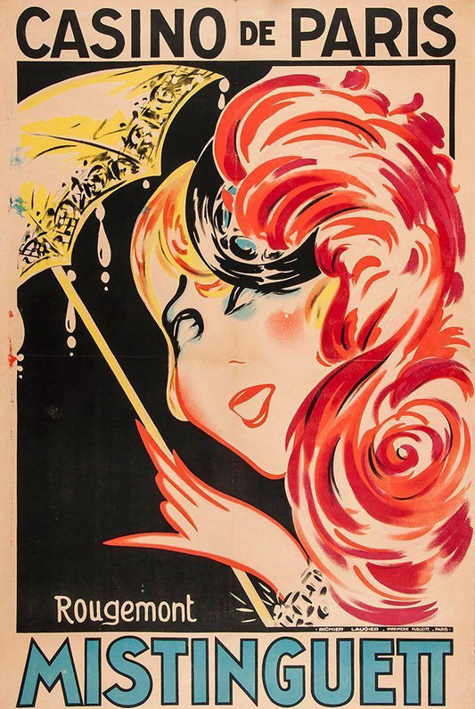 Mistinguett Black Ornate Wood Framed Art Print with Double Matting by Vintage Apple Collection
