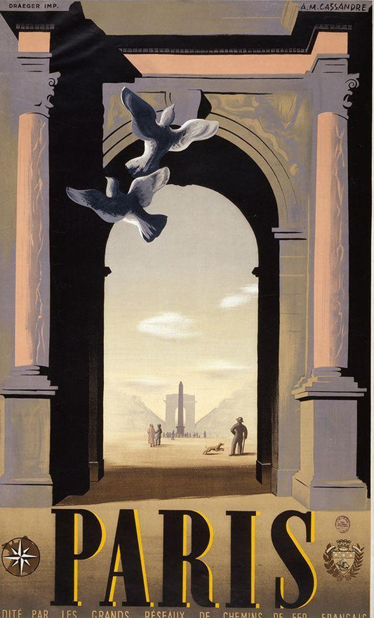Paris Arc Triomph Black Ornate Wood Framed Art Print with Double Matting by Vintage Apple Collection