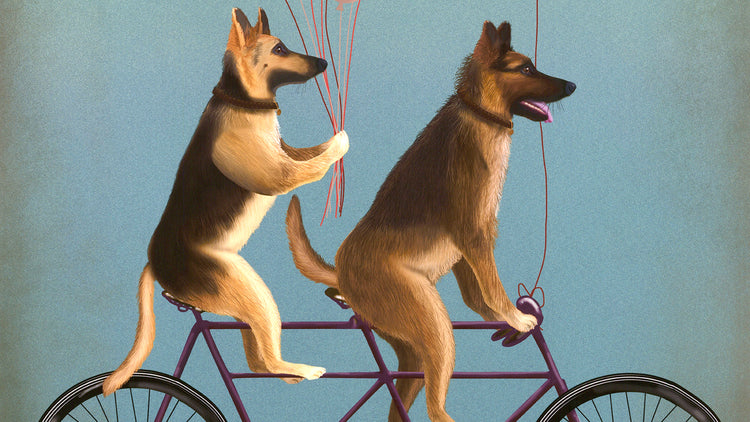 Basset Hound Tandem Black Modern Wood Framed Art Print by Fab Funky
