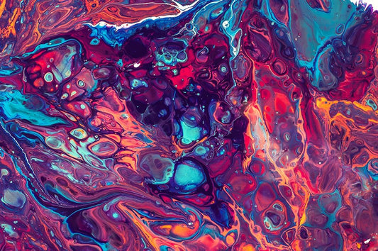 Fluid Acrylic Persian Spring White Modern Wood Framed Art Print with Double Matting by Jenny Rainbow Fine Art