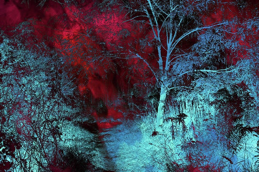 Moonlight Forest White Modern Wood Framed Art Print with Double Matting by Jenny Rainbow Fine Art