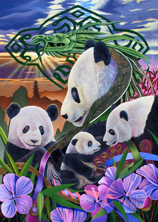 Panda Play White Modern Wood Framed Art Print with Double Matting by Stevenson, Graeme