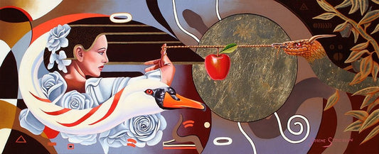 The Temptation Of Eve White Modern Wood Framed Art Print with Double Matting by Stevenson, Graeme