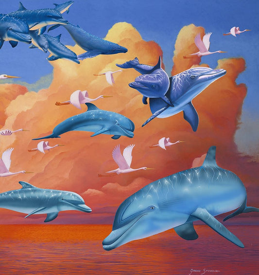Dolphins Clouds White Modern Wood Framed Art Print with Double Matting by Stevenson, Graeme