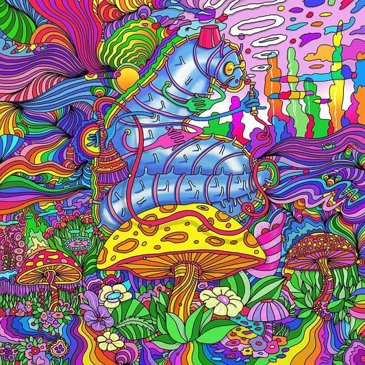Caterpillar Alice portrait White Modern Wood Framed Art Print with Double Matting by Green, Howie