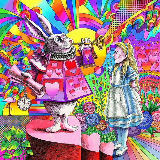 Alice and White Rabbit White Modern Wood Framed Art Print with Double Matting by Green, Howie