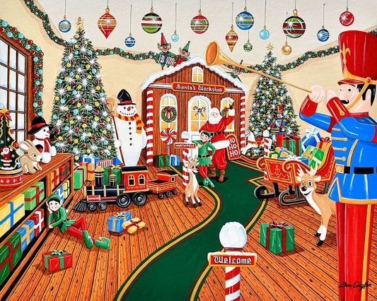 Santas Workshop White Modern Wood Framed Art Print with Double Matting by Engler, Don
