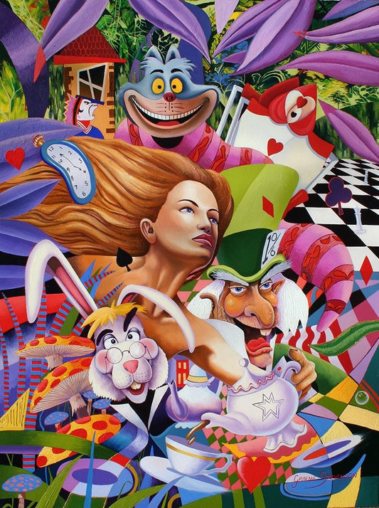 Wonderland Gang White Modern Wood Framed Art Print with Double Matting by Stevenson, Graeme