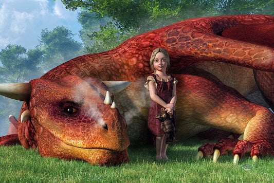 A Little Girl And Her Dragon White Modern Wood Framed Art Print with Double Matting by Eskridge, Daniel