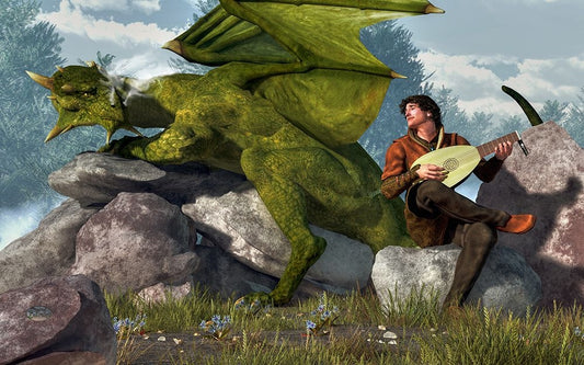 Bard And Dragon White Modern Wood Framed Art Print with Double Matting by Eskridge, Daniel