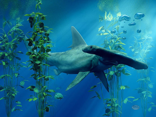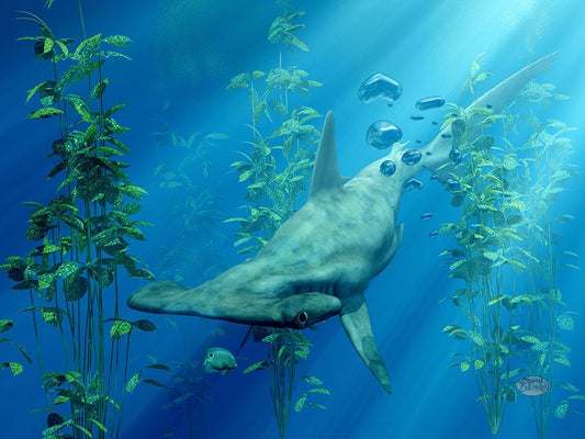 Hammer Head Among The Seaweed White Modern Wood Framed Art Print with Double Matting by Eskridge, Daniel