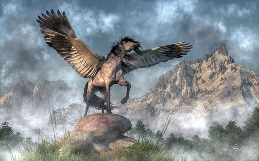 Pegasus White Modern Wood Framed Art Print with Double Matting by Eskridge, Daniel