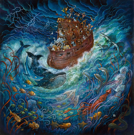 Noahs Adventure White Modern Wood Framed Art Print with Double Matting by Bell, Bill
