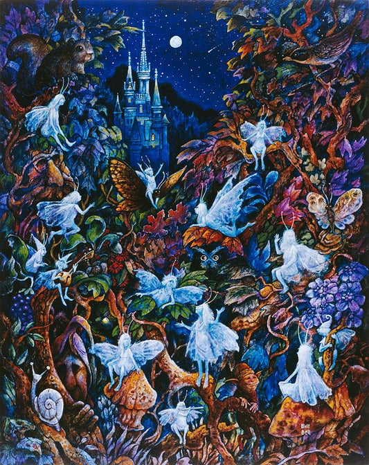 Blue Fairies White Modern Wood Framed Art Print with Double Matting by Bell, Bill