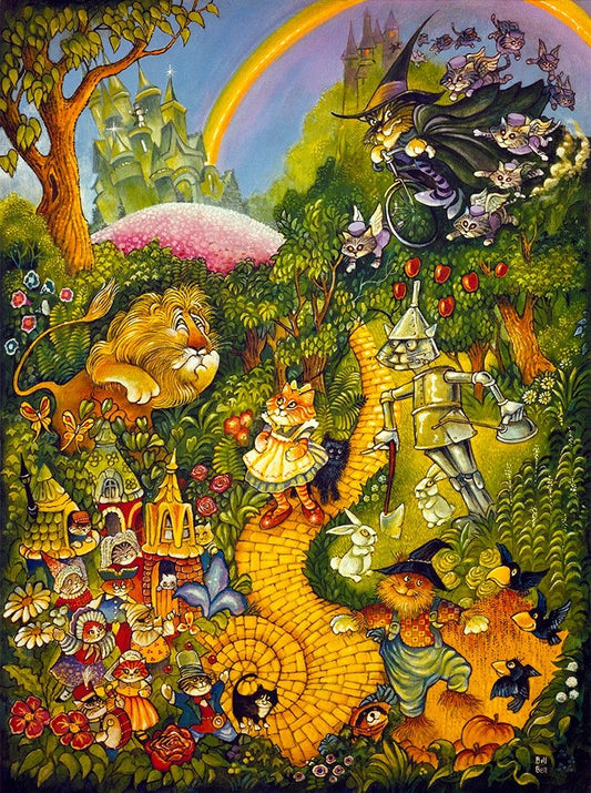Snow White And Friends White Modern Wood Framed Art Print with Double Matting by Bell, Bill