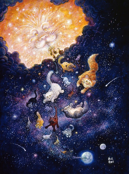 And God Created Cats White Modern Wood Framed Art Print with Double Matting by Bell, Bill